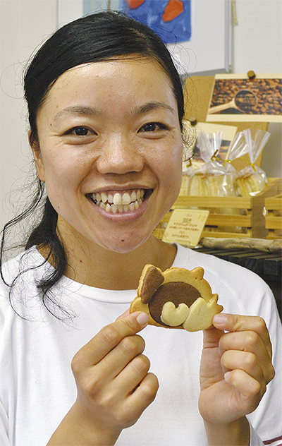障害者の生活介助事業所「長沢ベーカリー」(長沢1の34の13)では、大声大会のオリジナルキャラクター「ヤッホー君」をイメージしたクッキー作りに励んでいる。