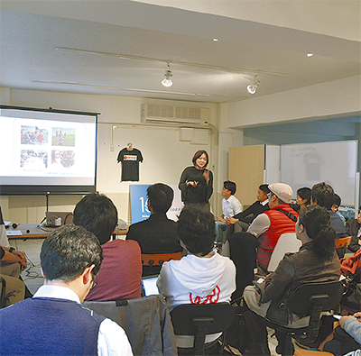 登壇者のひとり、井上芙美さんは、基地内居住者が市街に出ないことを知り、「交流の場や日本を知る機会も増やしたい」と市内でバイリンガルの保育園を立ち上げた。「自分には”想い”しかないけれど、仲間ができて、事業が広がっている。人と人をつなぐため、これからも挑戦していきたい」と話した。また、地産地消に特化した飲食店を展開する下澤敏也さん((有)たのし屋本舗)は、「地元の人でも地場の美味しいものを知らない。生産者の想いや誇りのストーリーを伝えるのが食を生業とする自分の役割。そこから加工事業など、つながりが生まれている」と語った。