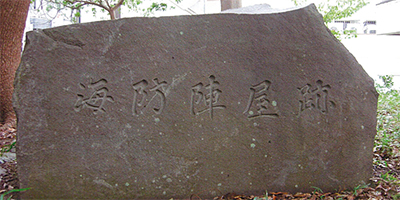 昔は、三浦市への出入りの手段には路線バスを使うことが唯一でしたが、鉄道がはじめて市内に入ったのは昭和41年(1966)7月7日のことです。今から46年も前のことです。京浜急行電鉄が上宮田に延長され、三浦海岸駅が出来たのです。市民の通勤、通学が大巾に拡大されたことはもちろんのこと、開通が夏のことで、特に三浦海岸の海水浴場は大変の賑わいをみせました。三浦海岸駅のすぐ近く、現在では「南下浦市民センター」になっている所を本営に「海防陣屋」が設けられたのは弘化4年(1847)のことで、江戸幕府は当時異国船の渡来に神経を使い、急いで江戸湾(東京湾)の防備に力を注いだのでした。そこで、彦根藩に三浦半島の警備を命じたのです。その時は浦賀千代ヶ崎から、相模湾側の荒崎や鎌倉の腰越など9箇所に砲台を築いたと言うことです。また、三崎の城山と原にも分営を設けました。その時の人員は2168人と言われ、財政的にも大変であったようです。ペリーが来航した嘉永6年(1853)に彦根藩から長州藩に交代をしています。この長州藩は善政を行ったということです。陣屋内に医師も居り、集団種痘も行われたと市内に残されている古文書にも書かれていると言うことです。ただ、安政2年(1855)10月2日に起った大地震で大きな被害がありました。鹿穴にある来福寺の境内に8人の藩士が葬られていますが、そのうち5人の藩士は地震による犠牲者です。この長州藩には、後に明治の元勲とされる、伊藤博文は16歳の頃で俊輔と呼ばれ、総奉行の益田越中に可愛がられていたとの話もあります。さらに木戸孝允も当時は桂小五郎と言っていた頃です。その後は、安政5年に熊本藩に代り、文久3年(1863)には佐倉藩へ交代となり、慶応3年(1867)に浦賀奉行所の所管となり、明治に入って姿を消して行きました。海防陣屋の規模としては総面積32、274平方メートル(9780坪)、建築面積5011平方メートル(1515・5坪)建物37棟と、言うことで現在の駅の辺りから海岸近くまでに及んでいたのでしょう。南下浦行政センターの入口には、当時を偲ばせる冠木門が復元され、建物の入口横には、昭和53年10月、当時の市長、野上義一氏の筆になる、「海防陣屋跡」の石碑があり、道路沿いの小高くなった所に、石碑が3基見えます。堤に上る所に、碑を見るときは、事務室に断るようにと貼り紙があるので、事務室に出向き、許可を得たところ「由緒ある海防陣屋跡地」の資料を頂戴しました。この地にお出かけになるときは、声をかけて、資料が貰えることを覚えておきましょう。さて、3基の碑のうち、2基は個人の慰霊碑です。いずれも「松原姓」の方で、中央の碑には「明治27、8年征清役従軍で戦死」の方。右側の碑は「明治10年西南伐討役に従軍して熊本県の田原(たばる)坂にて、27歳の若さで戦死」した方の慰霊碑です。いずれも明治29年の建立で、有志10名の氏名と他、240名とあります。向かって左側の碑は、表面に「日露戦役記念碑」とあり、昭和11年の建立で、当時の日本は戦争へと向かう時機で戦意高揚の気配があったのでしょうか。