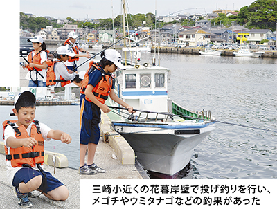 市立三崎小学校(及川圭介校長)では、釣り用品メーカーと連携した釣りクラブが数年ぶりに復活した。今月8日の活動では協力企業社員の指導のもと、児童らは花暮岸壁で釣りを楽しんだ。年間10回の活動を通して、釣りの醍醐味を体験するほか、海の恵みや環境について知識を深めていく。