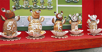 角田さんが貝殻アートを始めたのは15年ほど前。家族の感想を得て試行錯誤を重ねるうち、次第に自信作も生まれるように。当初は作りためた作品の写真だけを展示していたが、7年前からは新作を欠かさず発表するようになった。「展示すると見にきてくれる方から様々な反応がある。ウケることもあれば『全然似てない』と言われることも。毎週楽しみにしてくれる人がいるのは、作り手にとっては何よりの励み」と角田さん。作品づくりに加え、展示や作り方教室の依頼が舞い込んだりと多忙な日々だが「形になっていないアイデアがまだまだある。千回くらいまでは続けていきたいですね」とほほ笑んだ。