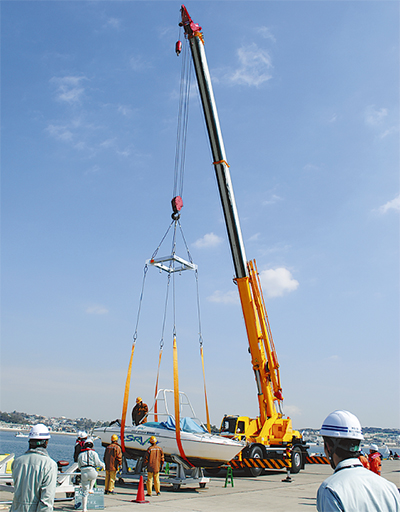 重機で2隻を引き揚げ