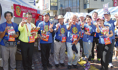 藤沢市内8ロータリークラブが9月28日、藤沢市民まつりの会場でポリオ撲滅の募金集めを行った。