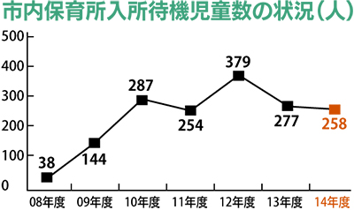 藤沢市が14年度に待機児童数県内最多となったのは、川崎市が前年度比376人減の62人と大幅に減らしたためだ。