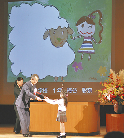 式典では昨年から始められた「小学校飼育委員会ポスター表彰式」を実施。動物とのふれあいをテーマとした絵のコンクールでは、市長賞に岡本愛加さん(鵠洋小6年)、市議会議長賞には清水美甫さん(鵠洋小4年)、獣医師会長賞に梅谷彩奈さん(六会小1年)が輝いたほか、76人が表彰された。ポスターや絵画はスライド上映され、児童一人ひとりに表彰状が授与されると、会場からは温かい拍手が贈られた。その後の10・15歳の犬、長寿猫の表彰式では、飼い主の長年の努力が称えられた。