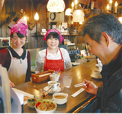 メニューを開発したのは、同大健康栄養学部の学生。この日は、ヘルシーと鉄分をコンセプトに、ひじき、豚肉、小松菜、大豆などを使った定食が出された。