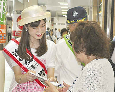 湘南台駅地下の自由通路で7月17日、藤沢北警察署管内地域交通安全活動推進委員協議会主催の「夏の交通事故防止運動・交通安全キャンペーン」が実施された。