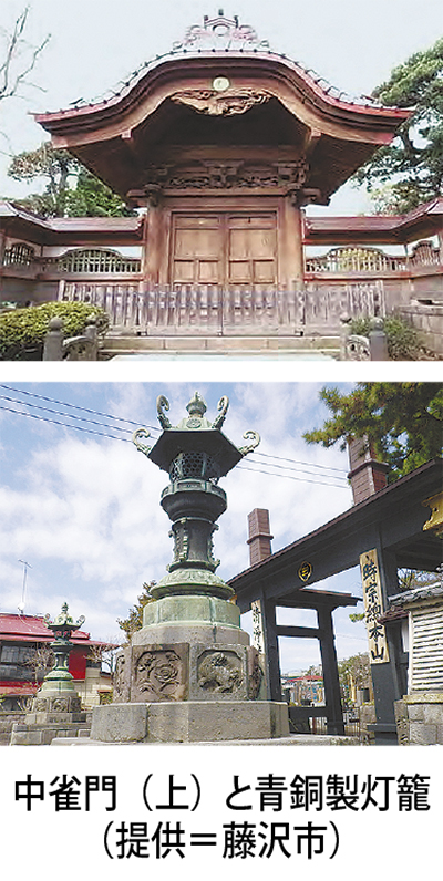 藤沢市は10月1日、新たな市指定重要文化財に、遊行寺の「中雀門(ちゅうじゃくもん)」と「青銅製灯籠」を指定した。