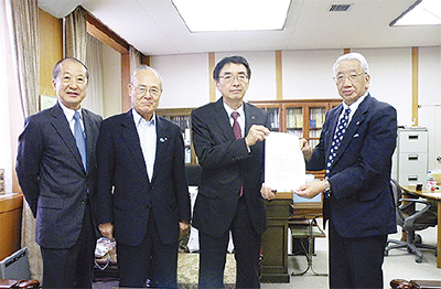 藤沢商工会議所(田中正明会頭)、公益社団法人藤沢市観光協会(二見幸雄会長)と江の島振興連絡協議会(湯浅裕一会長)は9月18日、2020東京五輪「『セーリング競技会場』江の島開催に伴う基盤整備」に関する要望を神奈川県に提出した。