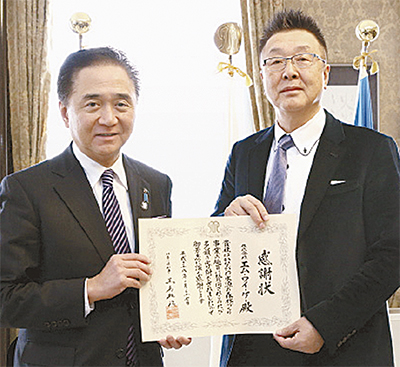 神奈川県内を中心に「美容室イレブンカット」を展開する(株)エム・ワイ・ケー(吉楽裕社長、藤沢市)は昨年11月、県の「かながわ水源の森林づくり」事業に111万円を寄付した。1月27日には黒岩祐治県知事から同社に、感謝状が贈られた。