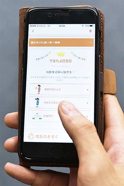 アプリをダウンロードして利用する電子母子手帳は、面倒で忘れがちな予防接種の管理を自動化。出生日から最適な予防接種日を自動表示し、接種日が近づくと事前にアラート機能で知らせる。また、身長・体重を入力するだけで自動でグラフ化。成長日記や写真、健診記録をいつでも入力でき、記録データは父親や祖父母らと共有することができる。藤沢市は「これからチラシを配布するなど周知していきたい」と話した。