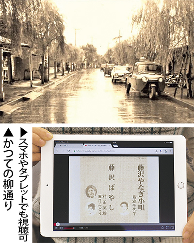 藤沢柳通りをモチーフに1960年、島倉千代子さんが歌った『藤沢やなぎ小唄』と、村田英雄さんと五月みどりさんのデュエット『藤沢ばやし』が、かつての街を写した白黒写真とともに、動画サイトに公開され、再び命が吹き込まれた。CD化されていなかったため、一般の人が聴ける機会は限られていた。
