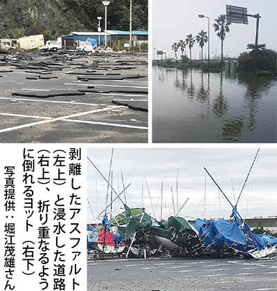 市観光シティプロモーション課によると、現在島内の整備が急ピッチで進められているが、岩屋の洞窟などの復旧のめどは立っておらず今後、全体の被害状況を調査した上で閉鎖期間を決定するという。島内で土産物屋を営む二見将幸さんは「消防団などのポンプ車が出動し、浸水家屋の排水にあたっていた。幸い人的被害はなかったようだ」と話した。