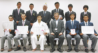 団体では、昨年、全日本学生馬術三大大会で総合優勝し、5連覇を達成した日本大学馬術部と、今年、全国選抜高校テニス大会で男子団体優勝を手にした湘南工科大学附属高校テニス部が表彰された。日大馬術部の諸岡慶監督は「これからも連覇に向けて頑張っていきます」、同テニス部の落合健太郎さん、竹内士瑛伊さん(いずれも3年)は「インターハイも頑張るので応援お願いします」と語った。
