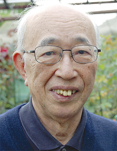 ○…川崎市出身。日本鋼管株式会社(現JFEスチール株式会社)に夜間勤めながら明治大学で文学を学ぶ苦学生だった。卒業後もしばらく同社に勤め、30歳を前にして電気関係の事務所を開設し、独立。70歳まで勤めあげた。独立と同時期に家を購入し、藤沢市へ。結婚後初めて持った庭にパンジーなどを植えて楽しんでいたところ、バラが趣味の義理の兄から余った一輪を譲ってもらう。庭の隅に植え、忘れかけていたある日、夕方の薄闇に白くぼんやりと浮かぶ一輪に心を奪われた。「それまで庭で育てていたパンジーの場所を全てバラに明け渡してしまった」とはにかむ。「最初に植えたコンフィダンスが今でも一番好き」と話す。