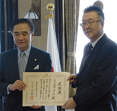 神奈川県を中心に美容室11cut(イレブン・カット)を展開する「株式会社エム・ワイ・ケー(藤沢市藤沢・吉楽裕社長)」は昨年11月、県の「かながわ水源の森林づくり」事業に111万円を寄附した。今回で9年目。先月12日には、黒岩祐治県知事より同社に感謝状が贈られた。