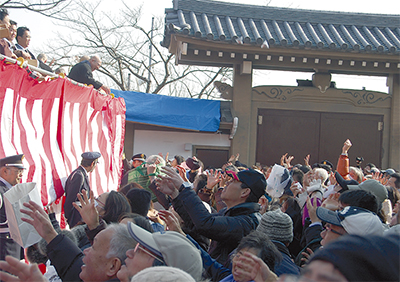 建長寺(市内山ノ内)の節分会は午前11時からの「江戸芸かっぽれ」の奉納で始まる。同芸は五代目櫻川ぴん助さん一座によるもの。豆まきは正午から法堂横で行われる。ミス鎌倉の2人をゲストに、福男・福女によって豆がまかれる。