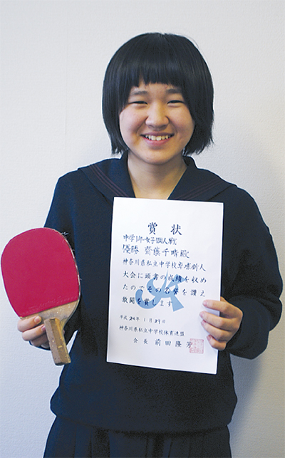 北鎌倉女子学園卓球部の斎藤千晴さん(13)が先月29日に行われた「神奈川県私立中学校卓球新人大会」の中学1年女子個人戦で優勝した。同大会での優勝は、同部設立以来、初の快挙となる。