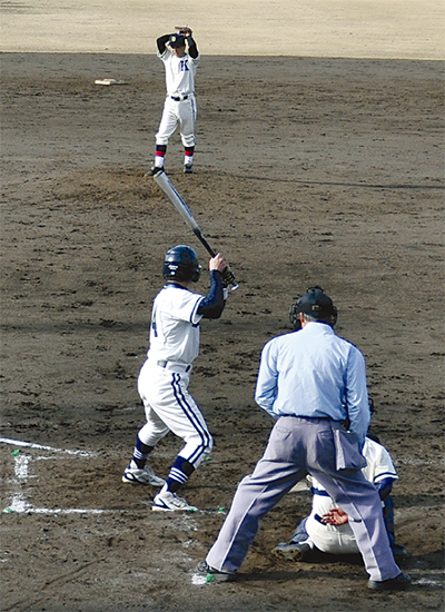 鎌学OBは、1回に先制点を許すなど4回表までは0対2と劣勢だったが、その裏の攻撃で逆転。6回にも相手のミスなどでランナーをため、チャンスを逃さず加点した。