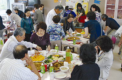 市内に避難する被災者同士が協力し主体的に活動していこうと、西ヶ谷住宅(市内手広)に居住する避難者を中心に「東北支援・鎌倉プロジェクト(元川雅通代表・67)」が今月16日、正式に発足し、出発式が西鎌倉小学校で行われた。また、これまで支援を行ってきた団体・個人に対し「お礼の会」として避難者から「なみえ焼そば」などが振舞われた。