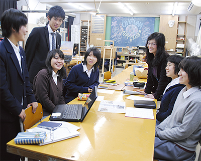 同校内の一室。終業のチャイムが鳴ると「アートラボ」のメンバーが次々と集まってきた。美術部をはじめ、演劇部やバスケ部、生徒会など普段はそれぞれに活動する生徒たちだ。2、3年生12人が参加している。
