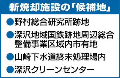 そのなかで市は、基本計画の策定を諮問している鎌倉市生活環境整備審議会の用地検討部会での話し合いの結果として、0・5ヘクタール以上で接道があること、史跡や都市公園、緑地、小中学校を除くなどの条件で市有地を絞り込んだ結果、4カ所(上表)を新しい焼却施設の候補地として5月29日に開催された同審議会に報告し、了承されたと明らかにした。