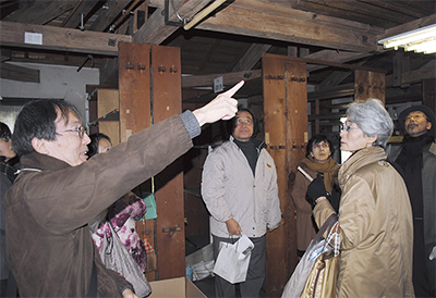 当日は約100人が集まり、和田代表らの案内で施設内部を見学した。当時の姿が残る閉架式の書架や畳張りの婦人閲覧室を目にした参加者からは「ボランティアなどを募って掃除や補修をすればまだ利用できるのでは」などの意見があがった。