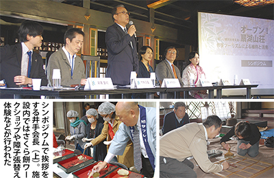 市内に数多く残る、鎌倉ゆかりの名士らの居宅や別荘などの歴史的建築物。これらを活かした新たな観光のあり方を考えようと、(公社)鎌倉市観光協会(井手太一会長)は3月28日、「修復ツーリズムによる維持と活用」と題した体験会とシンポジウムを鎌倉山の扇湖山荘で開催した。