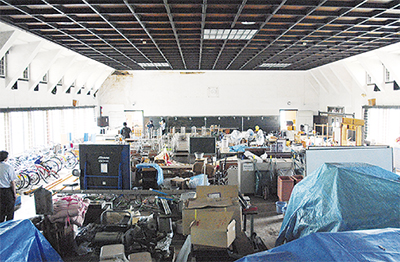 市は昨年12月から3月に御成小旧講堂の「現況調査」を実施。その結果、屋根の劣化が最も激しく、また材料にアスベストが含まれている可能性が指摘された。