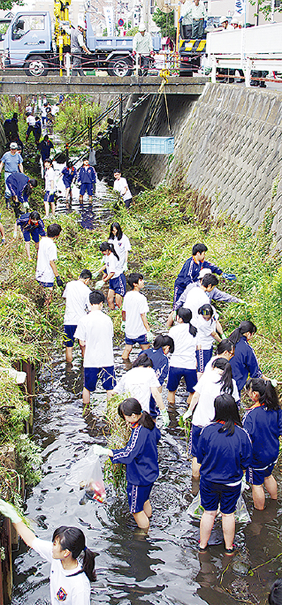 鎌倉西ライオンズクラブ(池田実会長)が主催する新川清掃が7月5日、行われた。