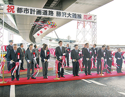 開通記念式典が行われた昨年12月22日には、服部信明茅ヶ崎市長、山上貞夫寒川町長ら主催者のほか、地元の県議、市議、自治会長ら関係者が出席。式典で服部市長は「藤沢大磯線の開通は、茅ヶ崎市、寒川町の長年の願いでした。開通に伴い、これまで抜け道を使っていた方の利便性が向上するともに、近隣住民の安全性の確保にも繋がる」と挨拶した。
