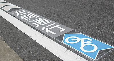 茅ヶ崎市は11月5日から「ちがさき法定外路面標示有効活用社会実験」を左富士通りで開始した。これは自転車走行環境整備のための社会実験として実施されるもの。法定のレーンが設置できない路線に自転車の走行空間を確保し、自転車の左側走行を促す路面標示を示して有効性を検証する。