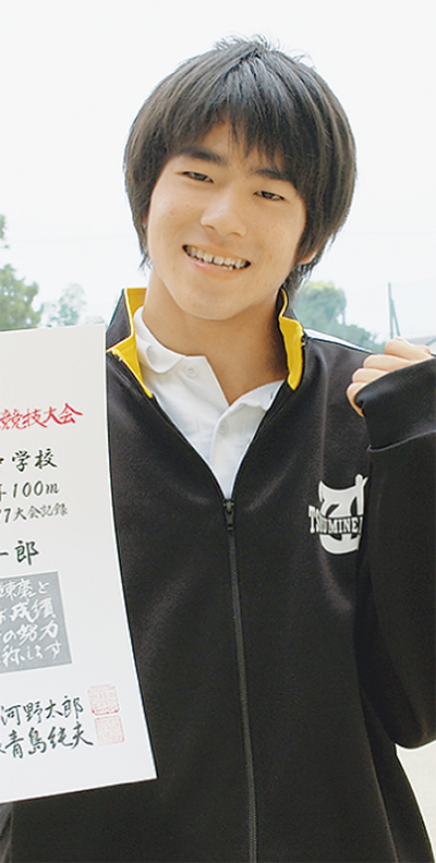 陸上競技を始めたのは今年4月。小学校では水泳や野球を経験したが「水泳は飽きてしまい、球技は苦手で」と、中学では陸上競技部に入部。100mやリレーに取り組んでいる。小学生の頃から短距離走が得意で、運動会ではリレーの選手の常連だったという。「小6の時には先生に『鶴嶺小最速の男』と言われたこともありました」とはにかむ。