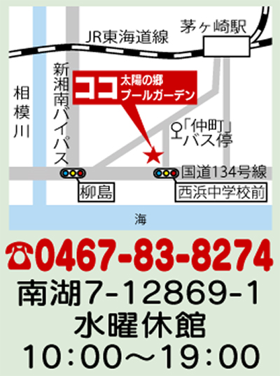 8月31日(土)までの月曜・木曜午後1時から4時に、25分3000円(入館料込)で水中整体体験会を実施中(要予約)。詳細は左記連絡先へ。