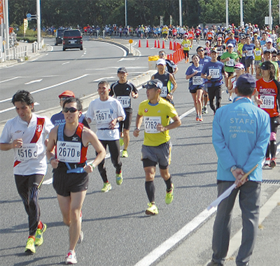 なお、コース周辺ではランナーの通過に伴って交通規制が敷かれる。西湘バイパス(上下線)西湘二宮IC〜国道134号線江の島入口間は午前8時頃から午後3時45分頃まで、新湘南バイパス(下り線)茅ヶ崎西IC〜茅ヶ崎海岸IC間は午前8時30分頃から午後2時頃まで通行止めとなる。詳細・問い合わせは同マラソン事務局【電話】0463・70・6667へ。