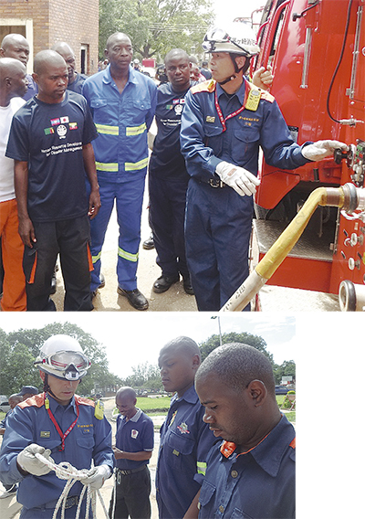 消防技術指導のためアフリカのザンビア共和国に派遣されていた茅ヶ崎市消防本部の岡林良太隊員と小澤宗哲隊員がこのほど2週間の任務を終え帰国した。