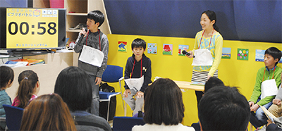 「子どもたちだけのバトルをやろう」とこの催しを企画したのは西浜小学校5年生の吉田那由汰君、原直寛君、鈴木琢磨君。この日バトルに参戦したのは5人。30人ほどのギャラリーが見守る中、それぞれが選んだ本の魅力を思い思いの言葉で一生懸命に伝えた。