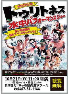 茅ヶ崎市屋内温水プール(萩園820)で10月21日(日)、「トゥリトネス水中パフォーマンスショー」が開催される。主催は、屋内温水プール指定管理者((株)東京アスレティッククラブ)。午前11時開演(10時30分開場)で観覧は無料。