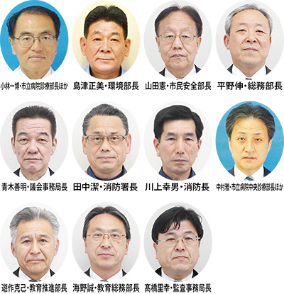 【部長級】▽小俣晴俊(市民安全部長)▽太田登(消防長)▽石田恭士(議会事務局長)▽佐宗直(監査事務局長)▽金子陽一(教育推進部長)