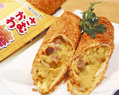 棒コロは玉ネギ、豚肉、チーズ、バターなどの具材を生春巻きの皮でスティック状にした長さ20cmほどのコロッケで、取扱店ごとに微妙な味の違いを感じられるのが魅力。具をソースで味付けすることがルールとなっており、簡単に味付けを変えることができない。カレー味は、具材の豚肉を細切れチキンに、青のりをバジルに変え、ココナツミルクも加える模様。万人受けする味にするのか、ピンポイントで年齢層を絞るのか、ギリギリまで検討していく見通しだ。「そのまま食べれるコロッケということでカレー味にしました。新しいチャレンジで上位をねらい、町おこしにつなげます」と木村隊長。