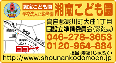 寒川に待望のこども園が2018年4月に開園する。その名も「湘南こども園」。創立50年のふじ幼児園が新しく生まれ変わり展開される。新こども園はふじ幼児園のモットー「園児はわが子」などの伝統を引き継ぎ、「入って良かったと言われる園にする」をスローガンに、分析に基づいた保育の実施を目指しており、早くも注目を集めている。