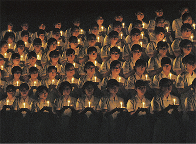 聖火を胸の前に掲げた2年生90人は、誓いの言葉として「この道を目指した頃の希望に満ち溢れた志を忘れずに、仲間と共に協力しあい感性豊かな看護師を目指していくことをこの灯に誓います」と一堂に発した。