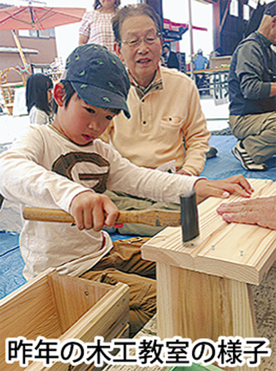 ものづくりの楽しさを知ってもらおうと、大工さんが教える木工教室(500円〜)や、主婦に嬉しい「IHクッキング体験」も開催。米粉を使ってチュロスやかき揚げを作り、試食もできる。クレープの移動販売車も登場するので、家族揃って遊びにきてみては。
