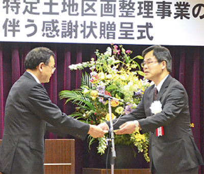 「真田・北金目特定土地区画整理事業」について、3月6日に予定している換地処分の公告で事業が完成するとして6日、金目公民館で関係者への感謝状贈呈式が行われた。