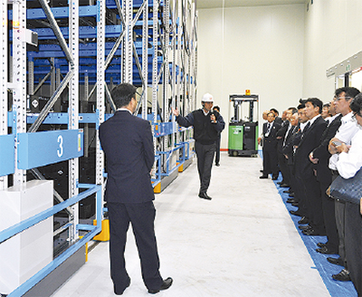 落成式・内覧会には設計や建設に携わった企業関係者や平塚北ロータリークラブの会員ら約80人が出席。梅原社長は「新しい冷凍倉庫がようやく出来上がった。食の半分が捨てられている時代にあり、無駄をなくすためにも冷凍保管は大切」と挨拶した。9月中旬以降の業務開始を予定しているという。