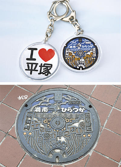 下水道管理事務局によると、キーホルダーと同じカラーデザインのマンホールは2001年頃から設置され、市内に6カ所あるという。紅谷町と明石町エリアに3カ所、馬入ふれあい公園エリアに3カ所ある。