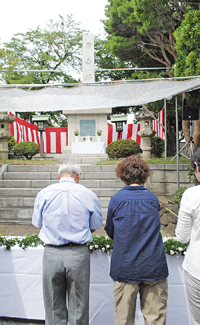 高梨会長は「戦争体験の風化が危惧されているが、豊かで平和な社会を実現することは、我々に課された使命であります」と殉国碑を前に式辞を奉読した。