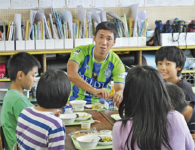 湘南ベルマーレの選手たちが献立を考えた給食が20日、市立花水小学校(成重千惠子校長)で提供された。