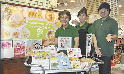 店名の通り、湘南ひらつか名産品を味わってもらおうと、平塚産小麦で作った「湘南ひらつかカオリ麺」を使ったうどんや、横田園芸の3種の「ばらジャム」を試せるアイスなど名産品を用いたメニューが並ぶ。「定食や単品のライスにはおしんこの代わりに長谷金の『湘南ひらつか七夕ふりかけ』が付きます。味見感覚で、知ってはいるけど食べたことがないという人を減らしたい」と店主の金子さん。レジ前に設置した土産コーナーには、杵若の「湘南銘菓ほっくり」や、「ベジたま最中」も販売しており、売上は上々だという。