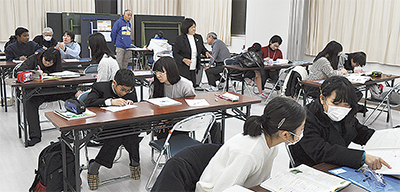 1月12日、寺子屋に集まったのは、太洋中の生徒10人。部活動後で疲れた様子を見せながらも「こんばんは」と元気に挨拶を交わすと「今日の授業で気になるところがあったから、数学でお願いします」と勉強への意欲をのぞかせる。午後7時から8時30分まで、講師と学校生活などの日常会話に花を咲かせつつも、真剣な表情で机に向かう。西園依里さん(13)は「学校とは違う考え方を示してくれたり、自分の目線に合わせて一緒に考えてくれたり、ここでしか知ることができないことがある」と満面の笑みを浮かべていた。